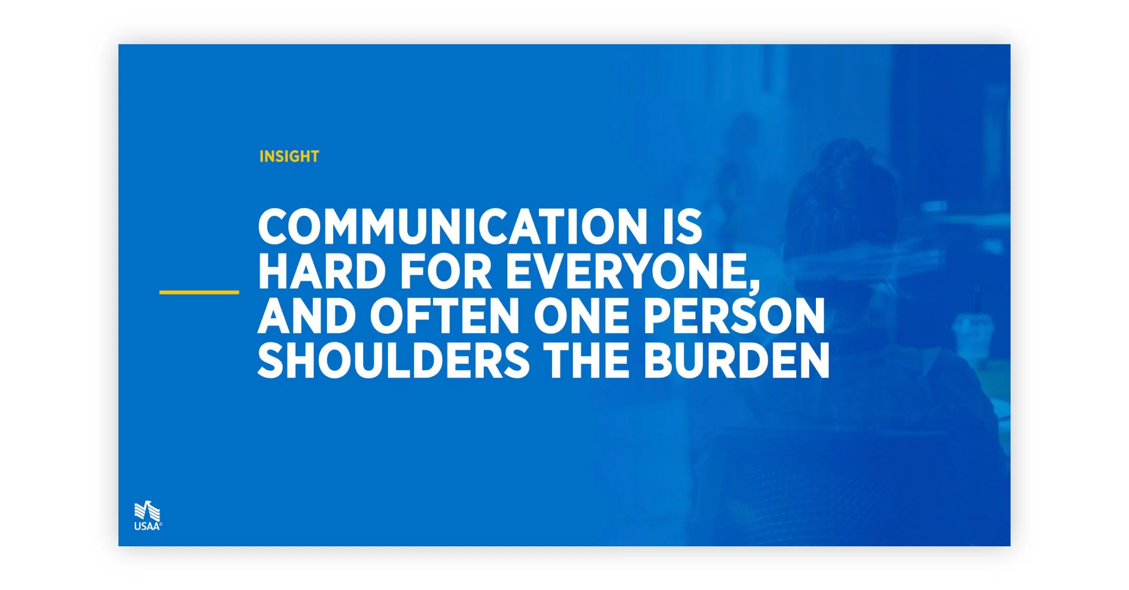 As a result of the similarities and shared needs we identified from our homebuyer composites, several opportunities for USAA became apparent to our team, including: